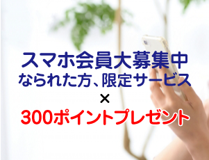 会員になられた方、限定サービス×300ポイントプレゼント!!